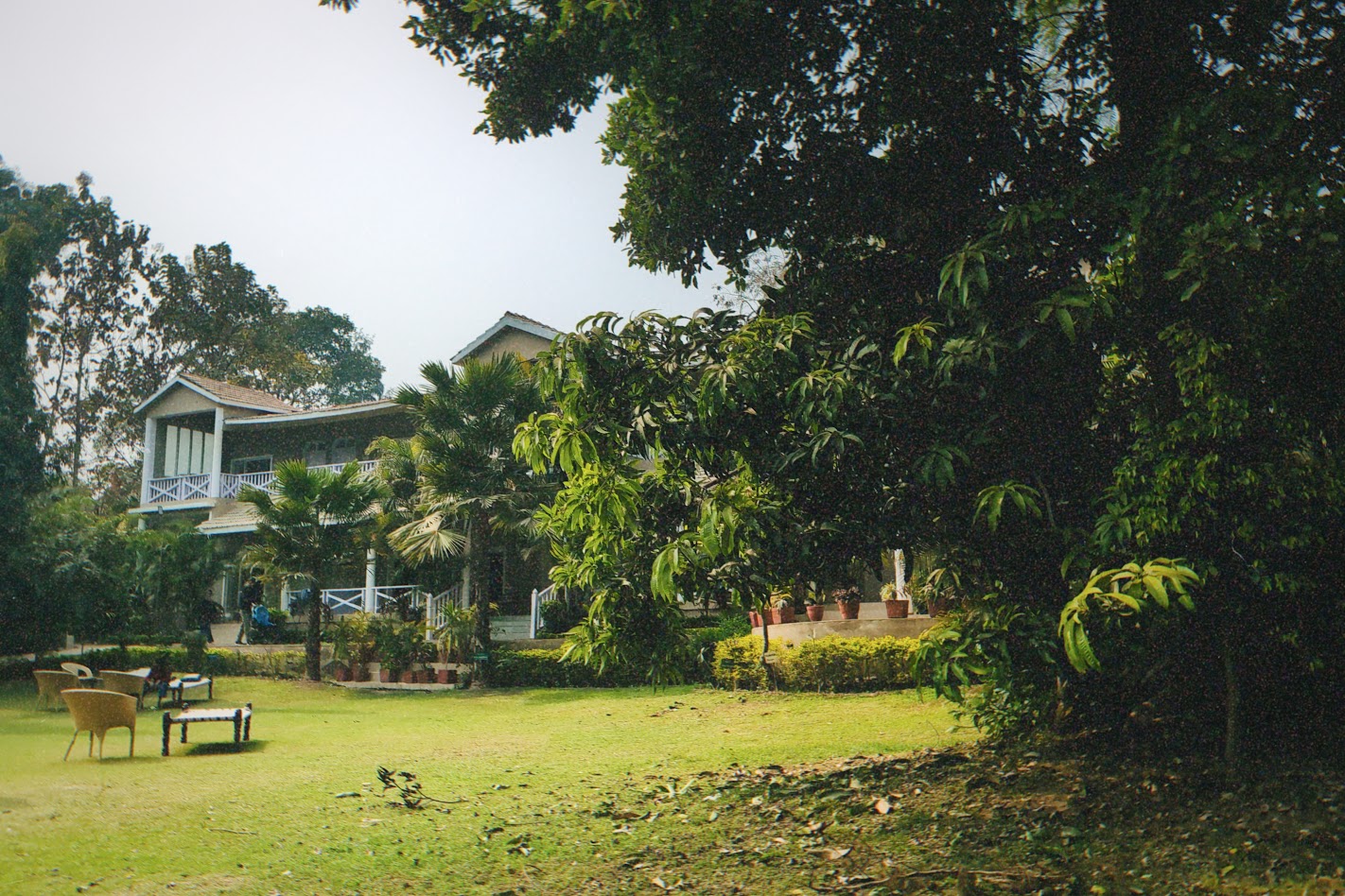 Next morning, Ishu insisted on visiting the temple again. So we went again and after roaming for some time and having breakfast we left for Bandhavgarh. On the way, we stopped at a few places - a mustard field full of yellow flowers, near a valley and then at the circuit house in Rewa. After a tour of the circuit house, we had lunch and left for Bandhavgarh. The last 10-20km of the journey was so beautiful with dense forests on both sides of the road. We arrived at the resort at around 7 in the evening. We were tired and it was already late so we just went to our rooms. Yash and Ishu started drinking and I went to sleep.