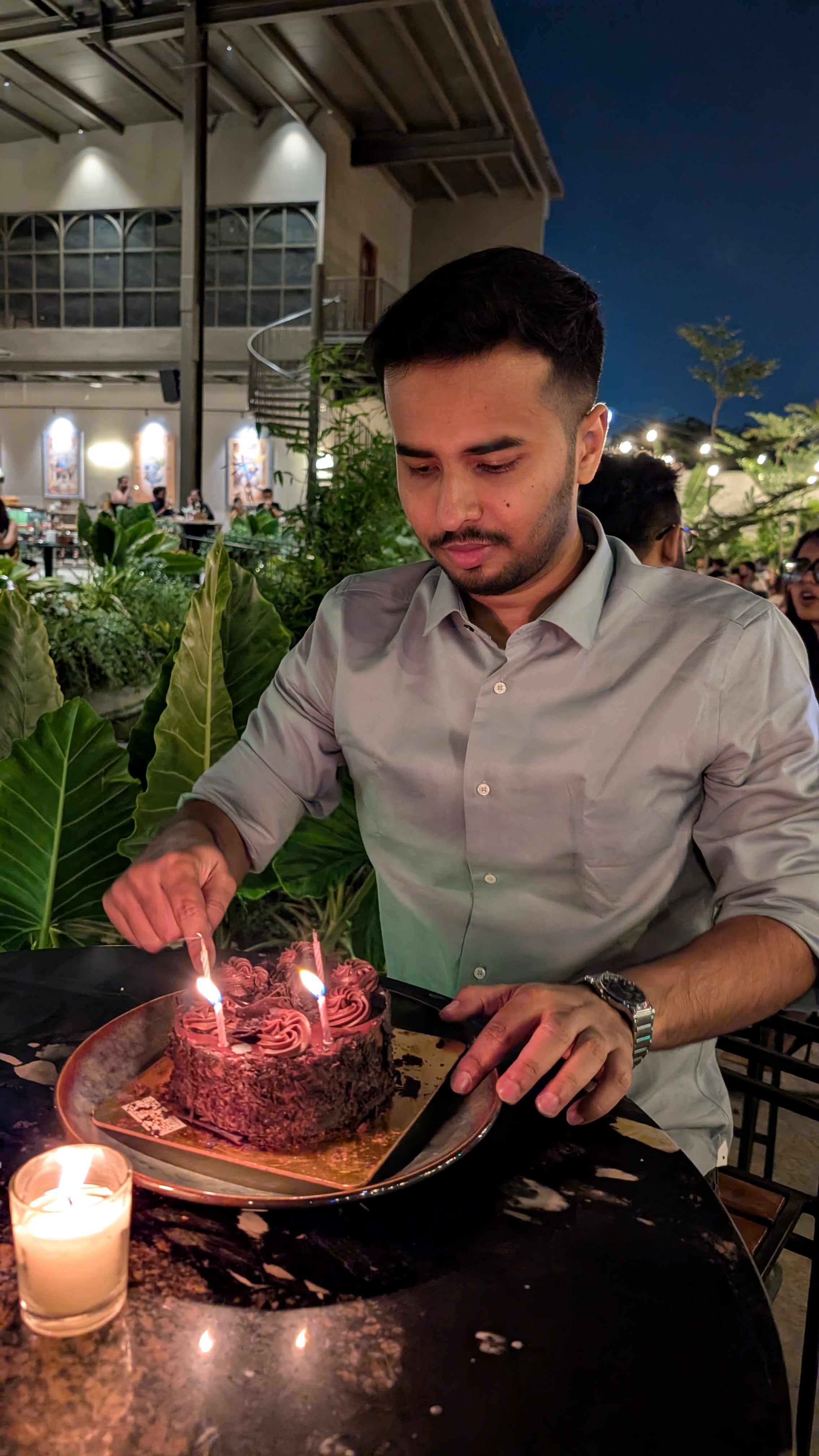 During the day, I had no work because I took a sick leave. I didn’t have any plans but I thought that I would go out for some shopping and treat myself. But it was a very hot day and I just stayed in the room the whole day. Also, it was Holi that day so everyone was busy. But in the evening, Kirti called and made some plans to go out for my birthday treat. We went to this place called “The Bier Library”. It was open and beautiful but also very loud. I could see the clear sky and it was a full moon. Again, I had to cut the cake that Kirti had brought. I was feeling embarrassed because I had never celebrated my birthday in public before — at least the cake-cutting part. Later we had dinner and chatted about her wedding plans and then went home.